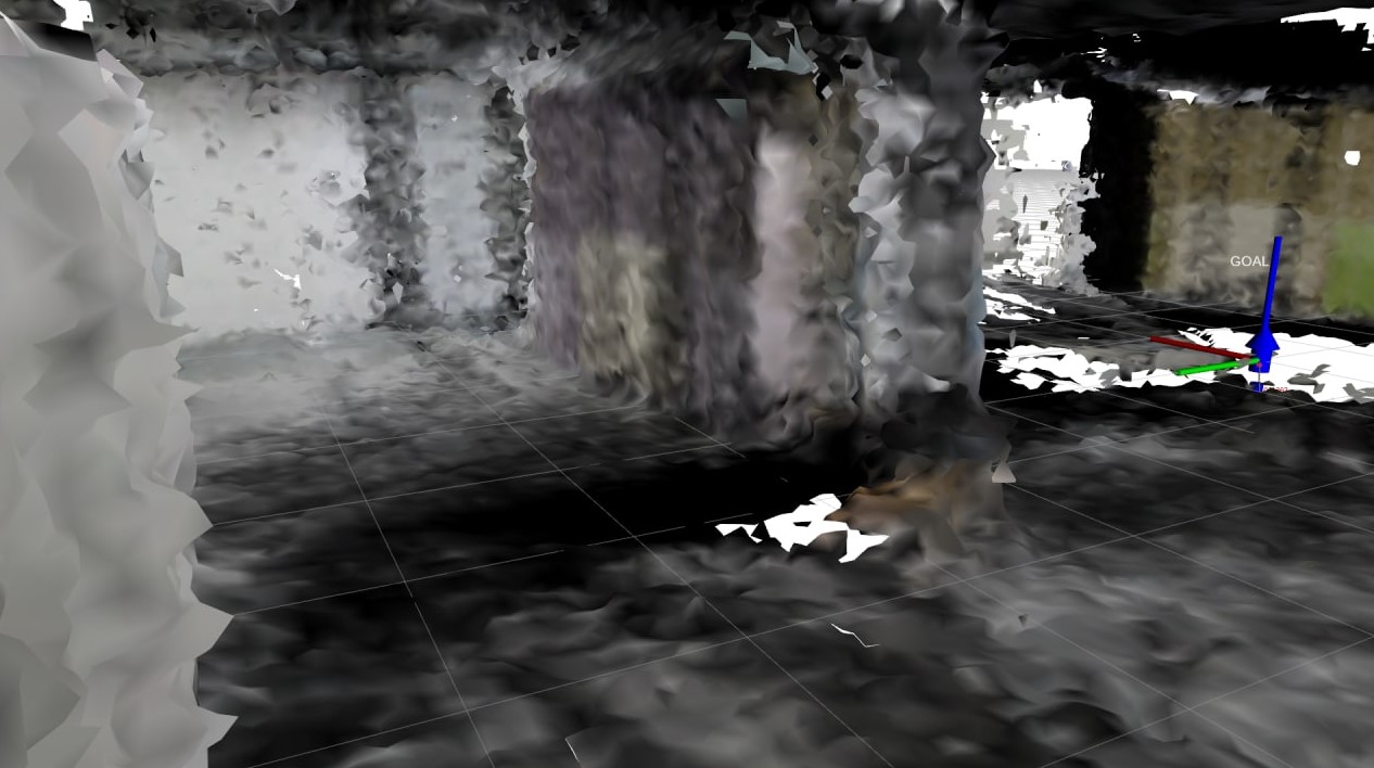 We use a path planner, described in 2. In this paper Receding Horizon Next-Best-View Planner is presented, which uses Rapidly-exploring Random trees to navigate and explore the environment. It yields the following results, here is the occupancy map and the corresponding tunnel as it is seen by human being: