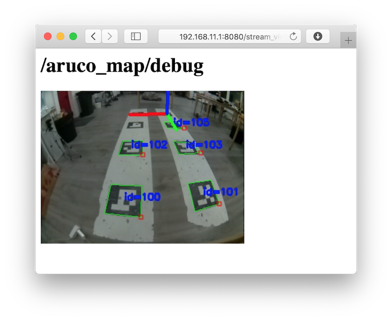 An easy to understand detected map visualization is posted in the aruco_map/debug ROS topic (live view is available on http://192.168.11.1:8080/stream_viewer?topic=/aruco_map/debug):