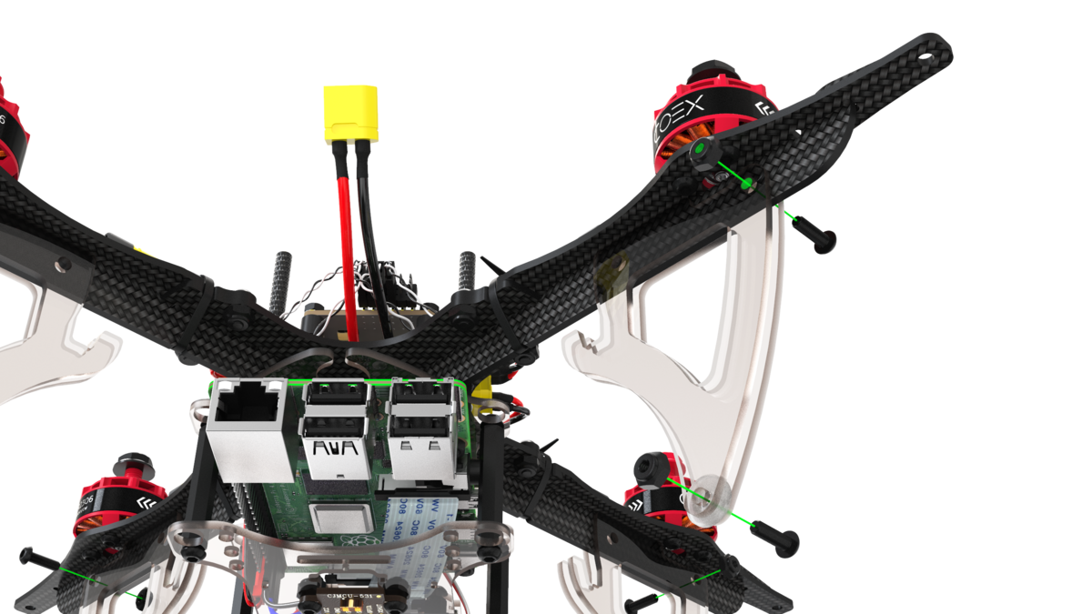 During assembly, screws and racks of various sizes are used, using fasteners of the wrong size can damage the copter.