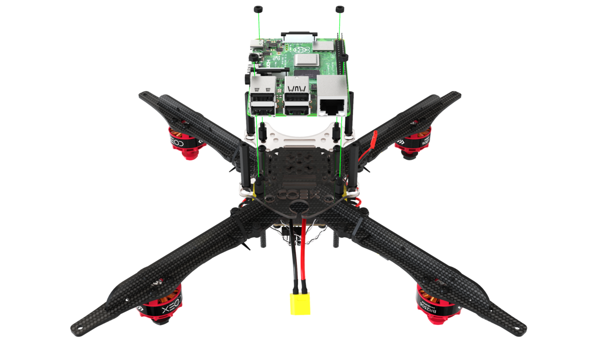 Install the battery strap and connect the flight controller to the Raspberry Pi using a USB cable.