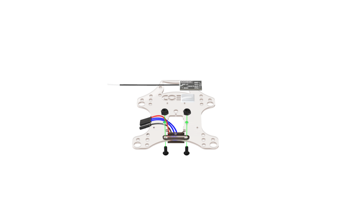 On the capture deck, install the rangefinder using self-locking nuts and M3x8 screws, and glue the radio using double-sided tape.