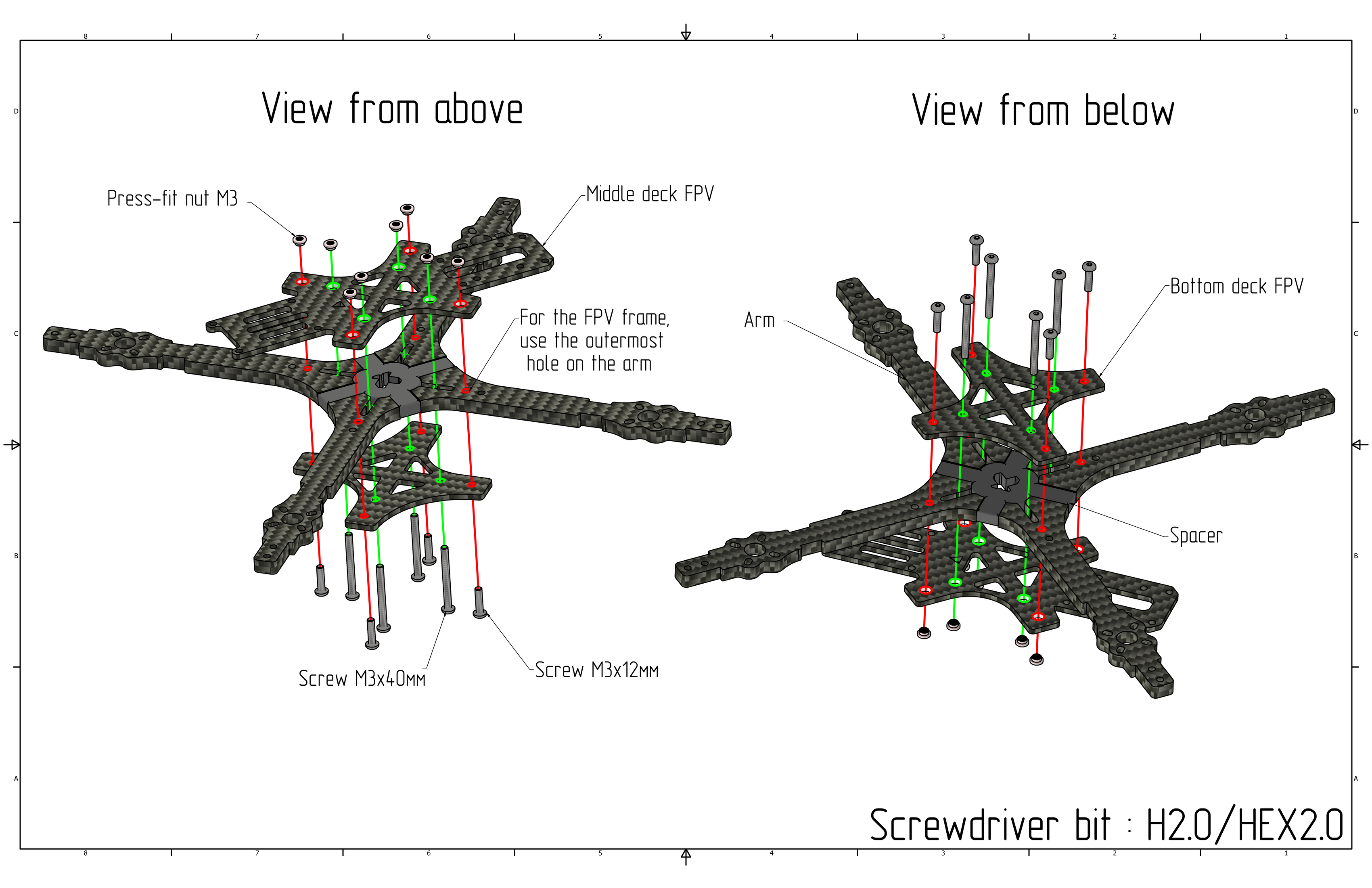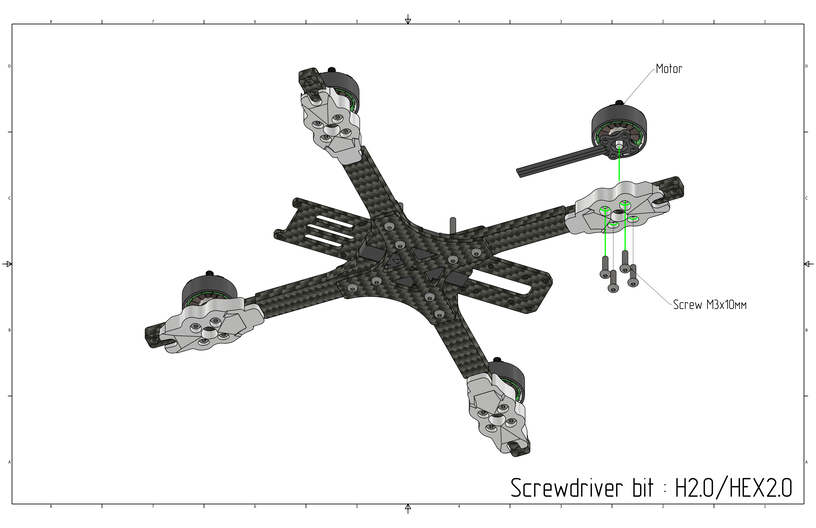 Fasteners of various sizes are used during assembly. Installing screws or standoffs of the wrong size may result in damage to the quadcopter.