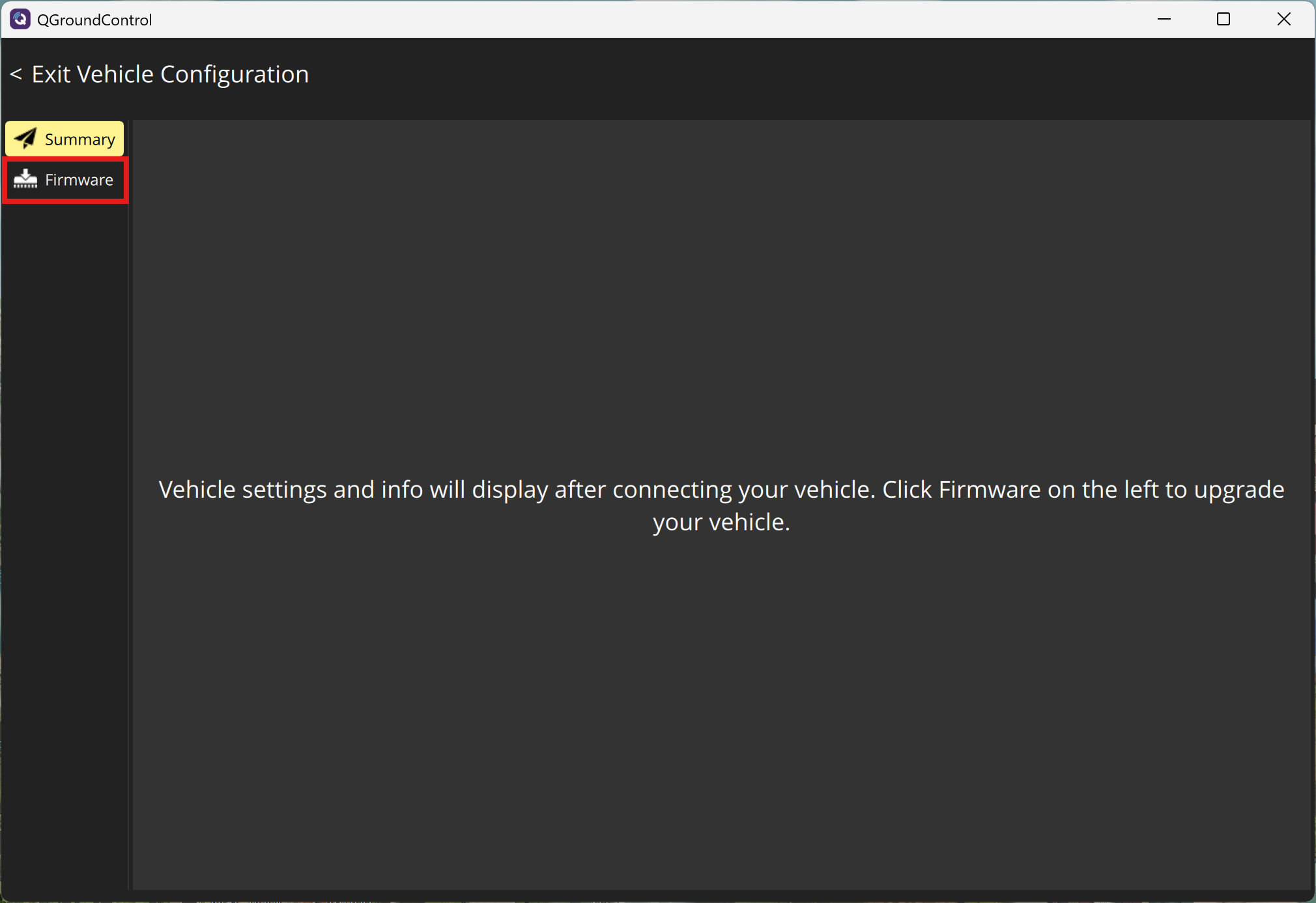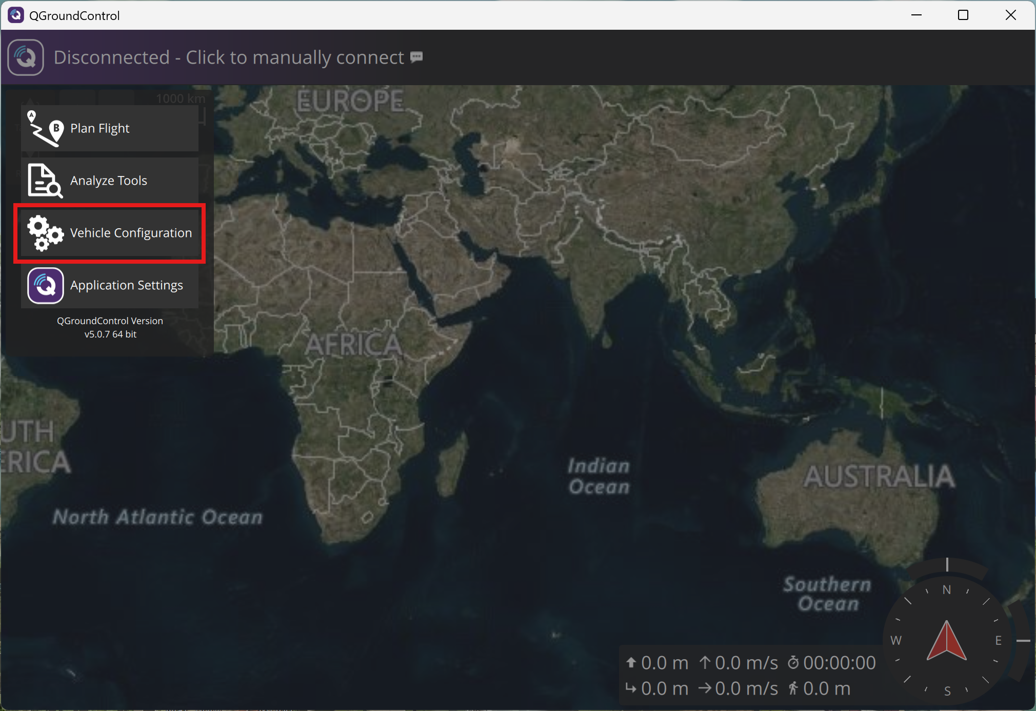 Open QGroundControl and click the logo in the top-left corner.