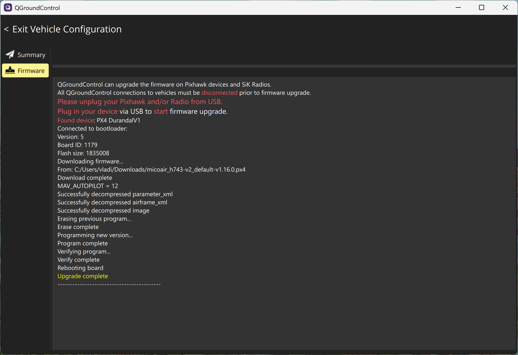 Flashing MicoAir743v2 from Betaflight to PX4