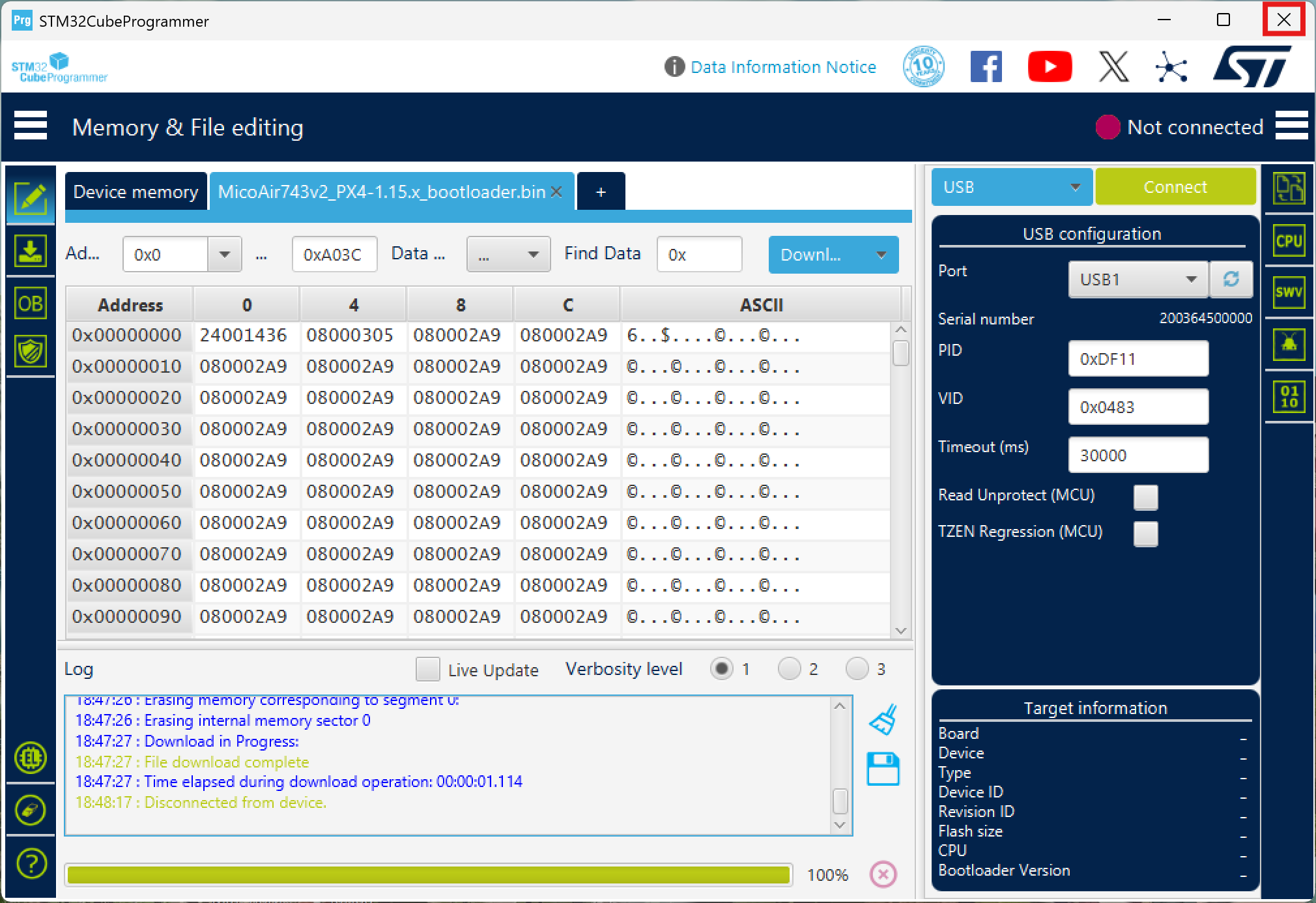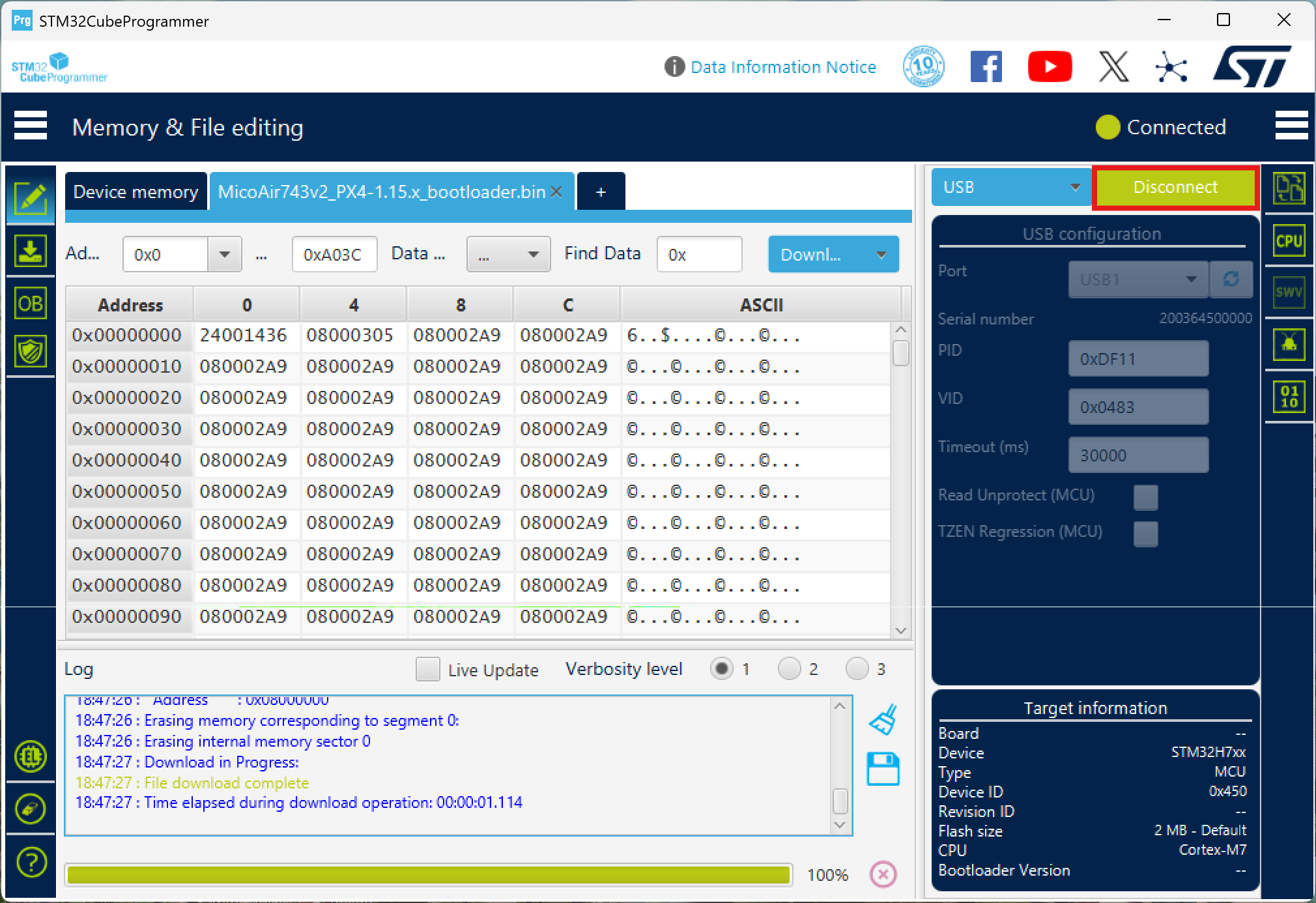 - PX4 bootloader for MicoAir743v2: drive.google.com (PX4 bootloader)