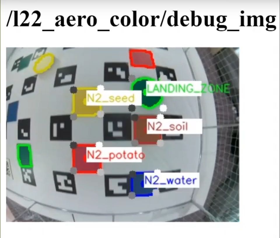 /l22_aero_color/markers(l22_aero_vision/ColorMarkerArray) - list of rectangular markers./l22_aero_color/circles(l22_aero_vision/ColorMarkerArray) - list of round markers./l22_aero_color/debug_img(sensor_msgs/Image) - image for debugging./qr_debug(sensor_msgs/Image) - image for debugging.