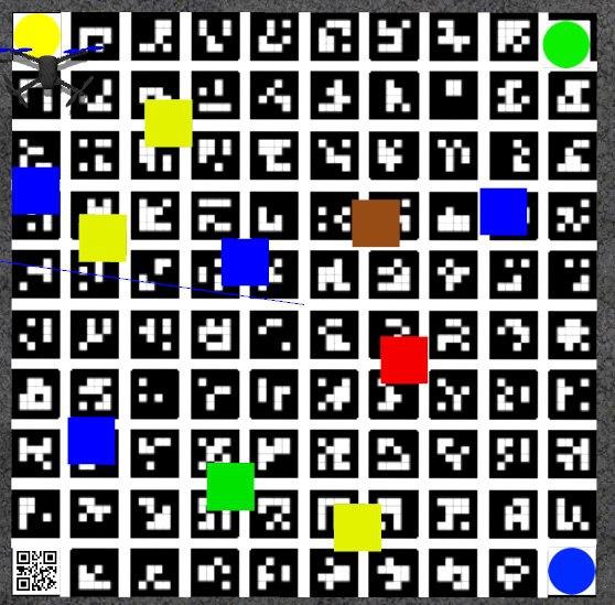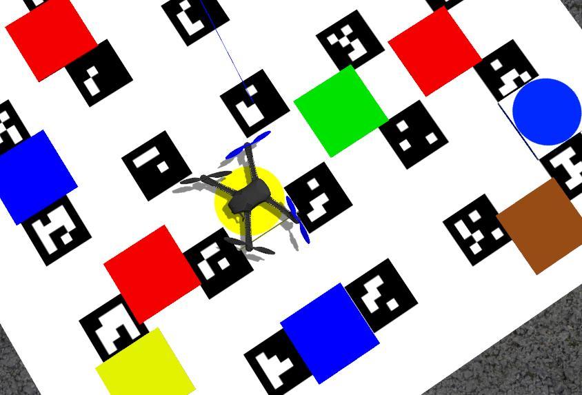 - Takeoff (from QR-code) and landing (onto a small colored marker).
