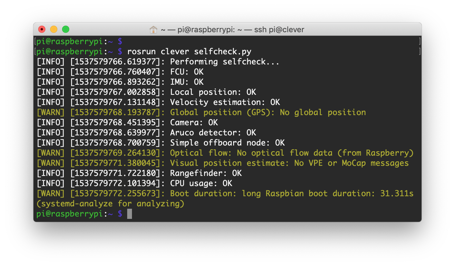 rosrun clover selfcheck.py