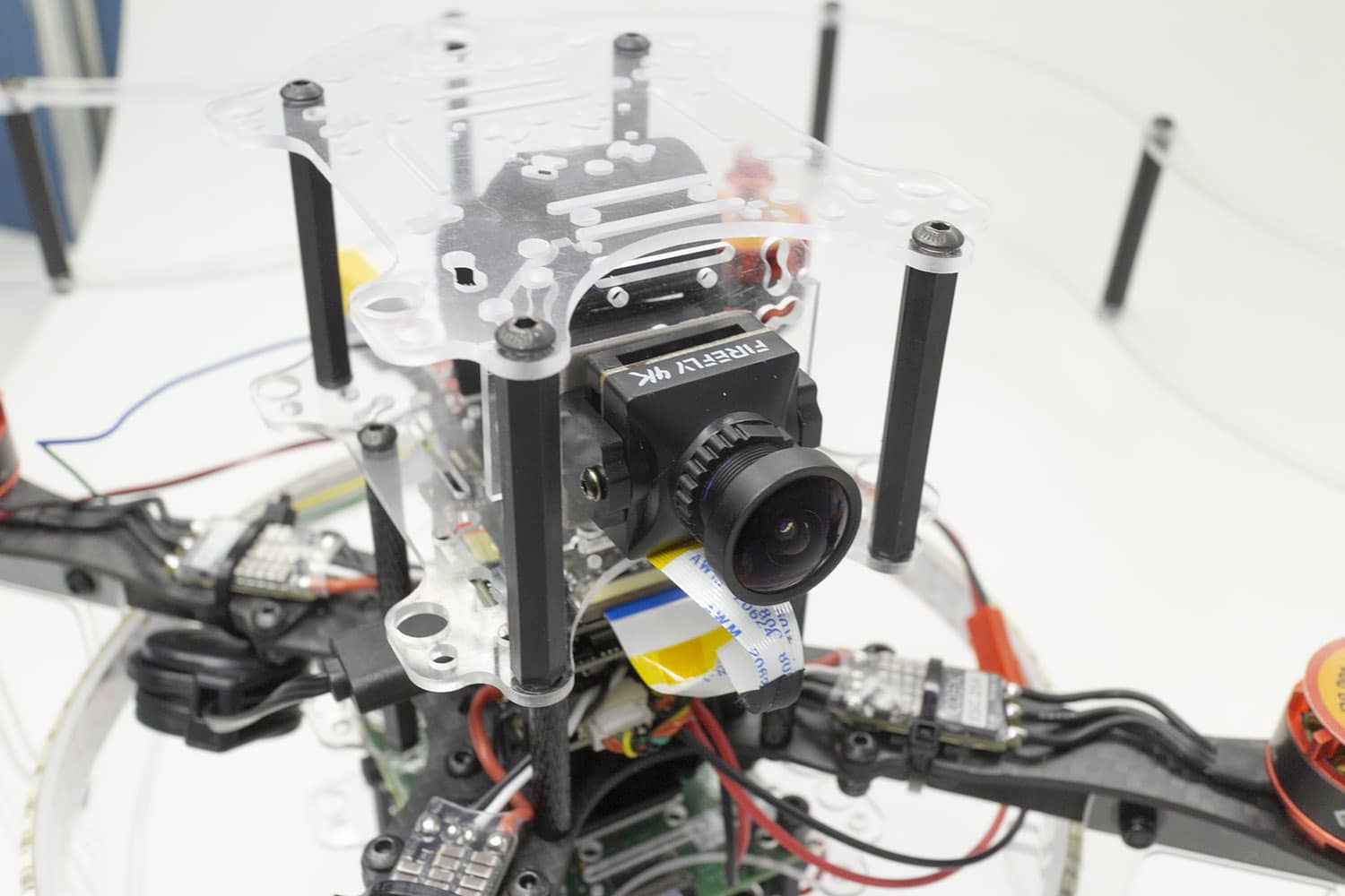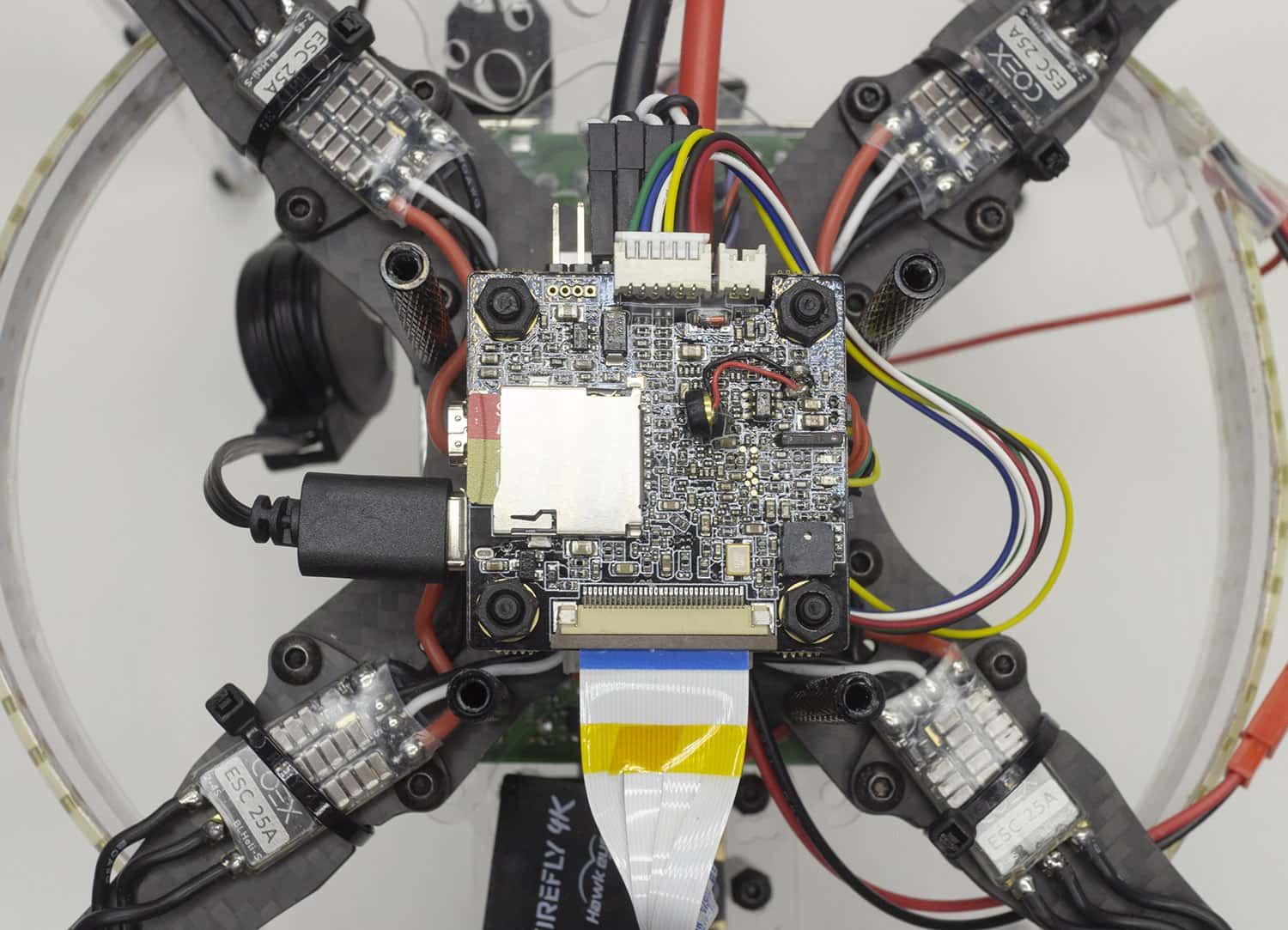 Если вы планируете использовать камеру Hawk Eye, припаяйте провода питания на данном этапе, так как после установки полетного контроллера сделать это будет затруднительно