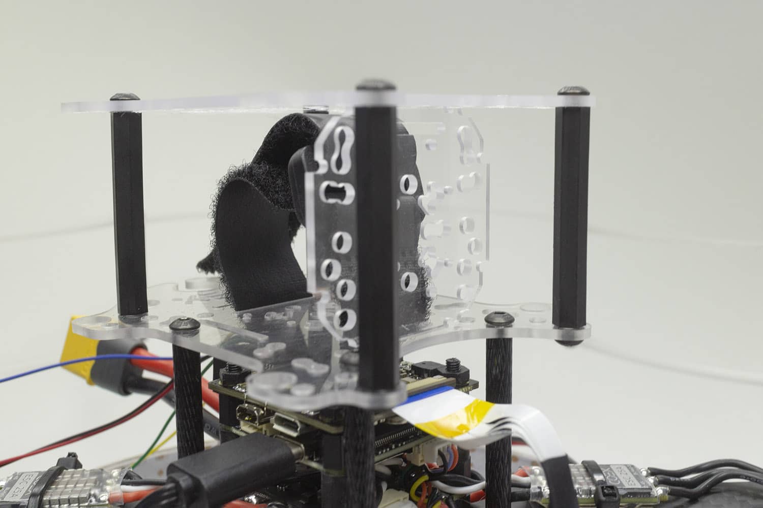 Сверху на стойки установите плату камеры, зафиксируйте её нейлоновыми гайками и подключите шлейф.