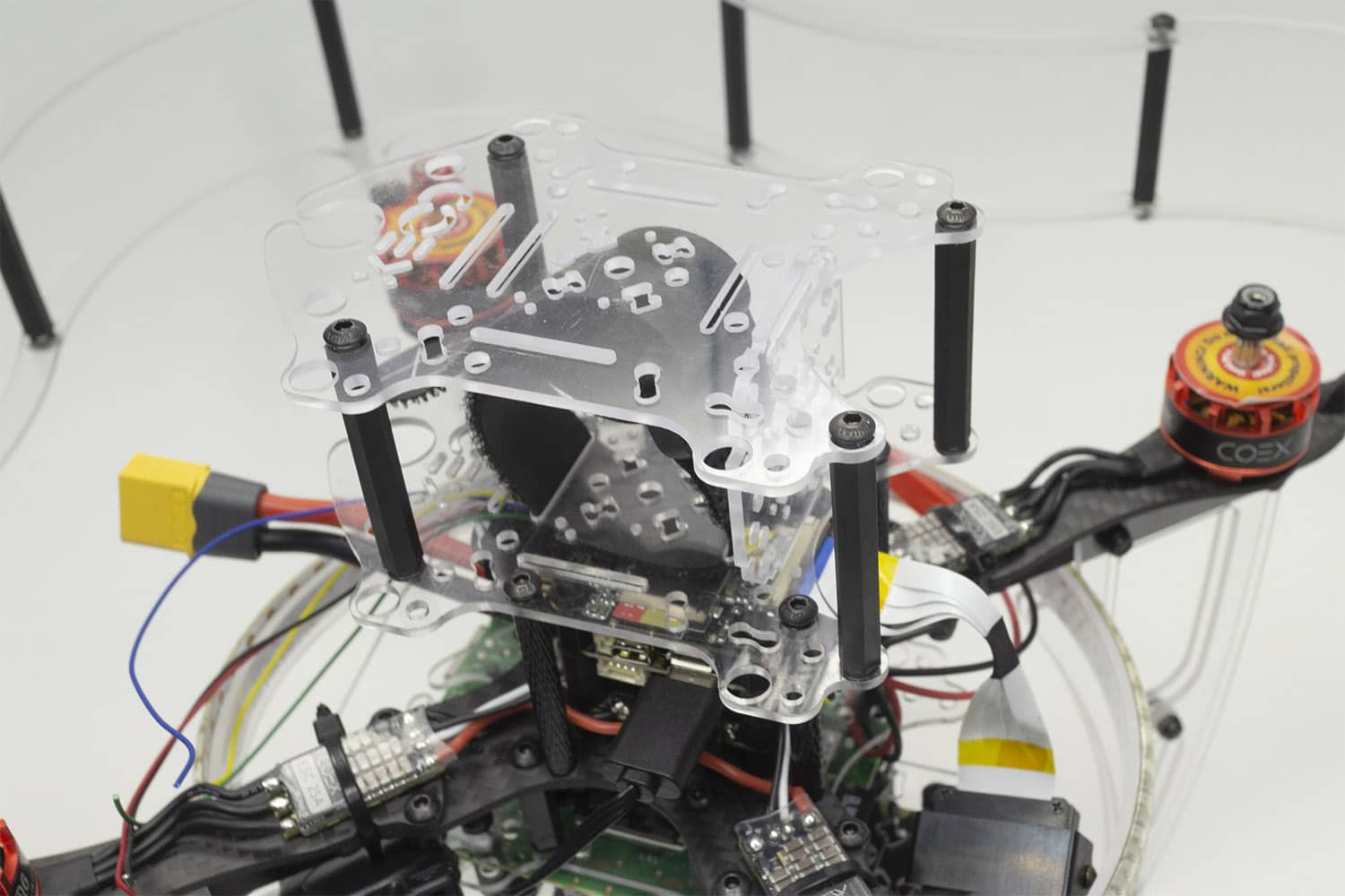 Зафиксируйте полетный контроллер нейлоновыми стойками 6мм.