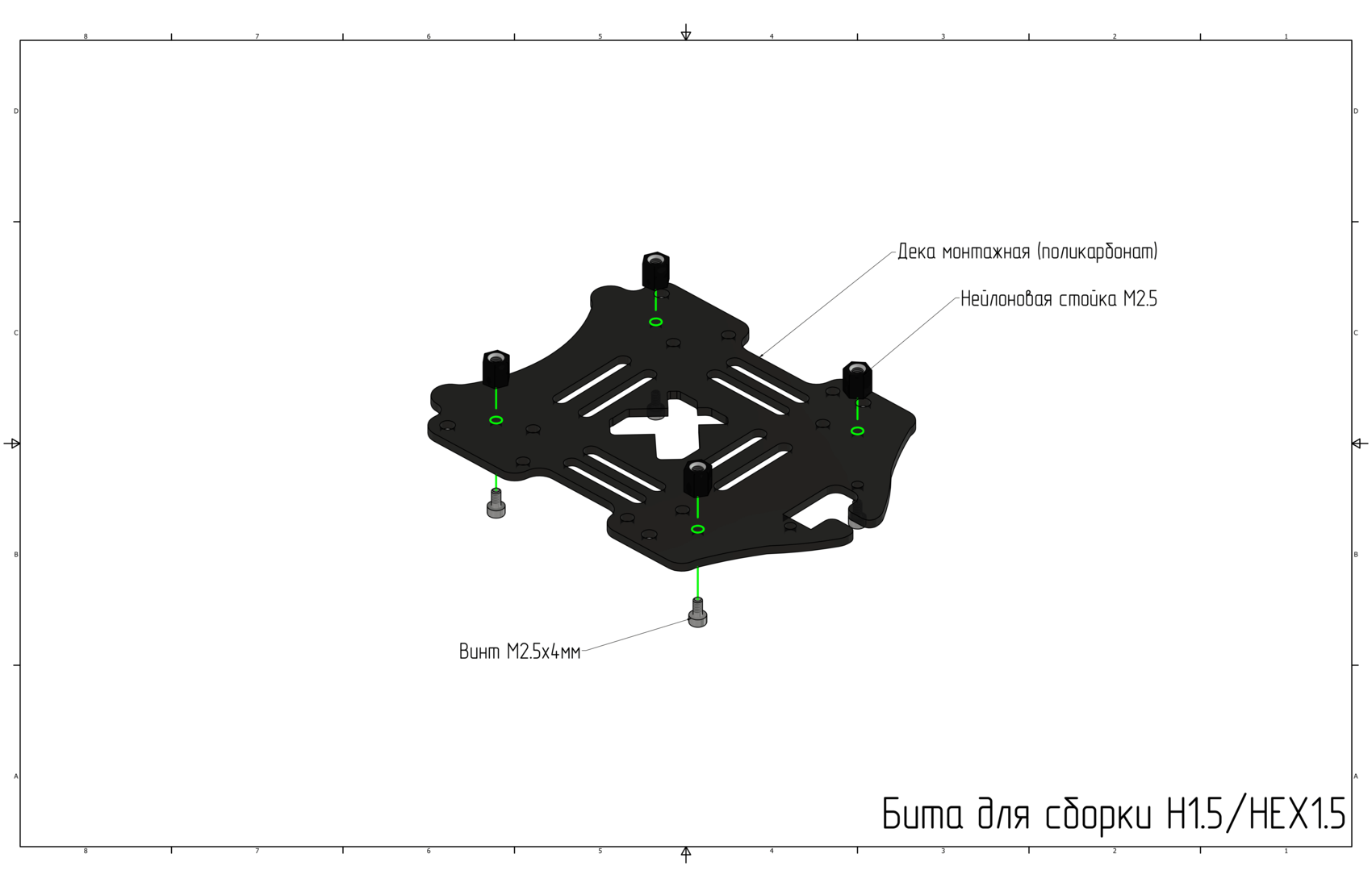 Установите на монтажную деку из поликарбоната стойки M2.5 (Ячейка 3) с помощью винтов M2.5x4 (Ячейка 17).