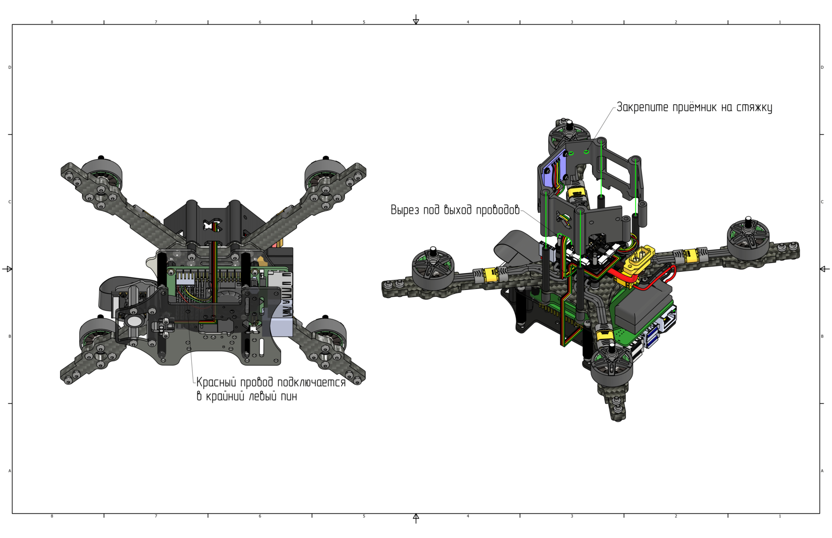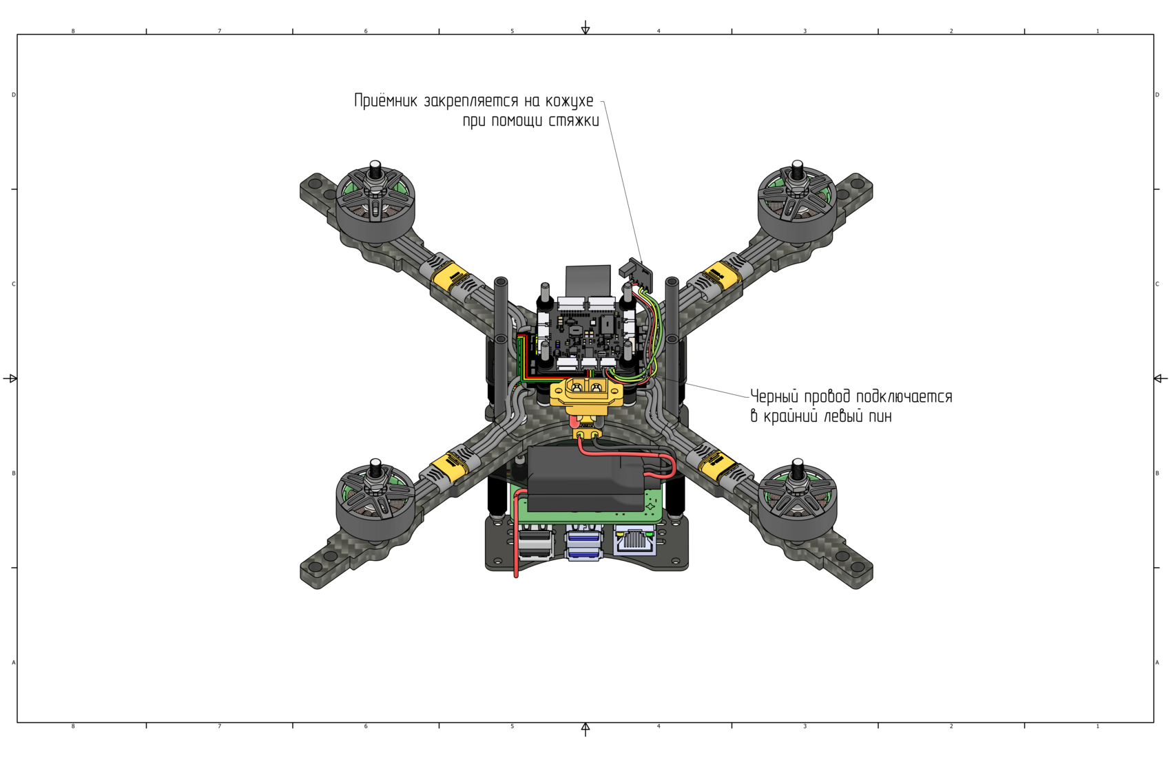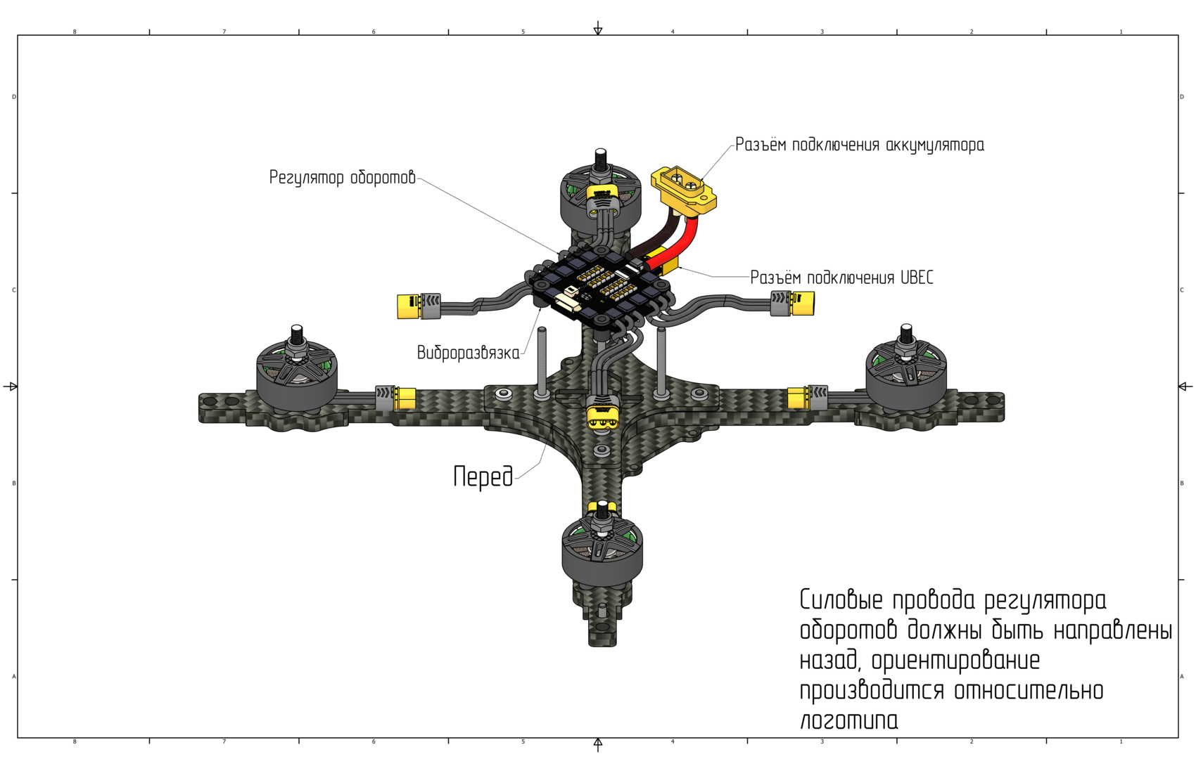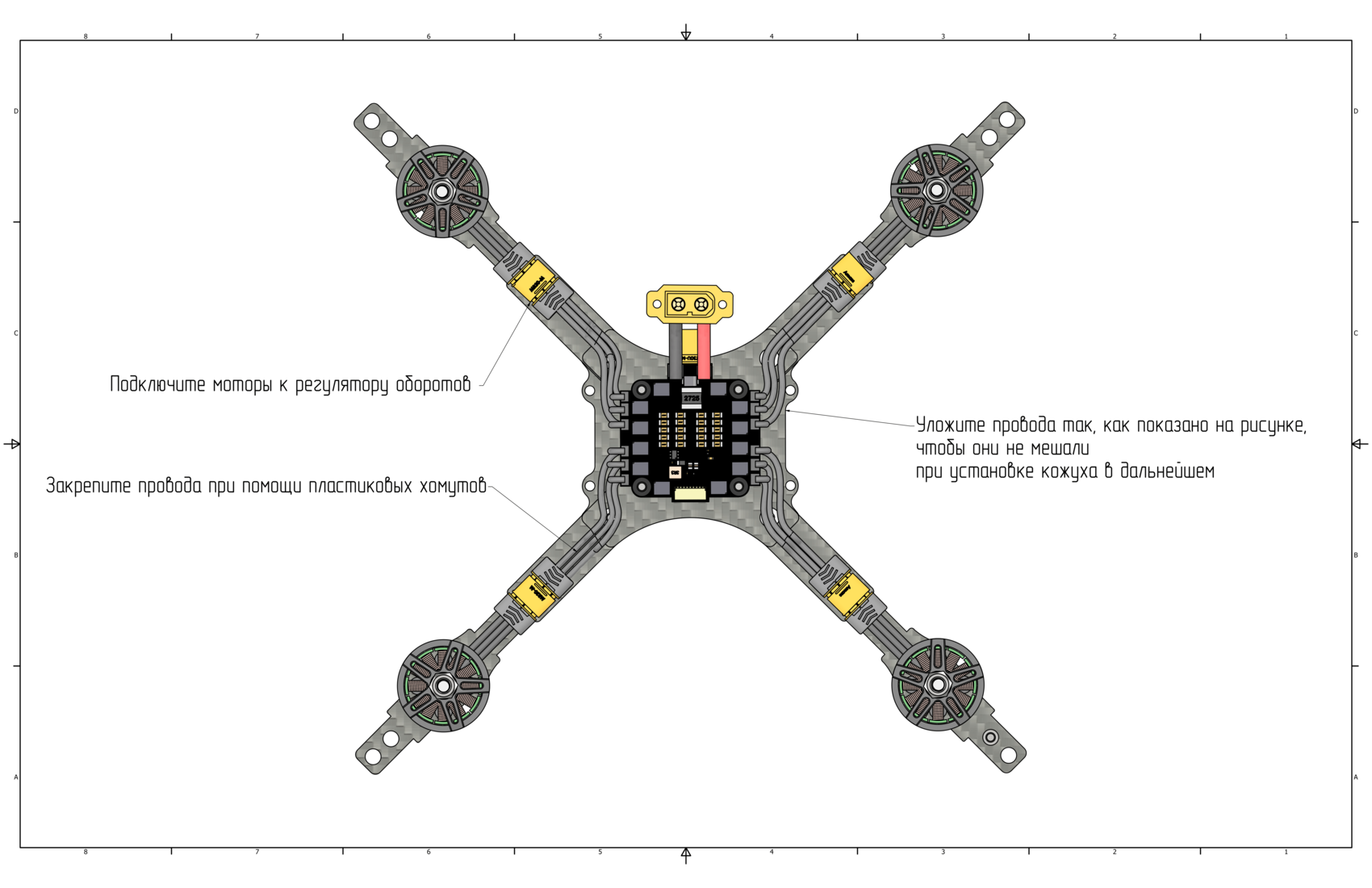 Проверьте, что ни один из компонентов не остался незакрепленным. Перед первым включением убедитесь, что пропеллеры не задевают кожух и провода.