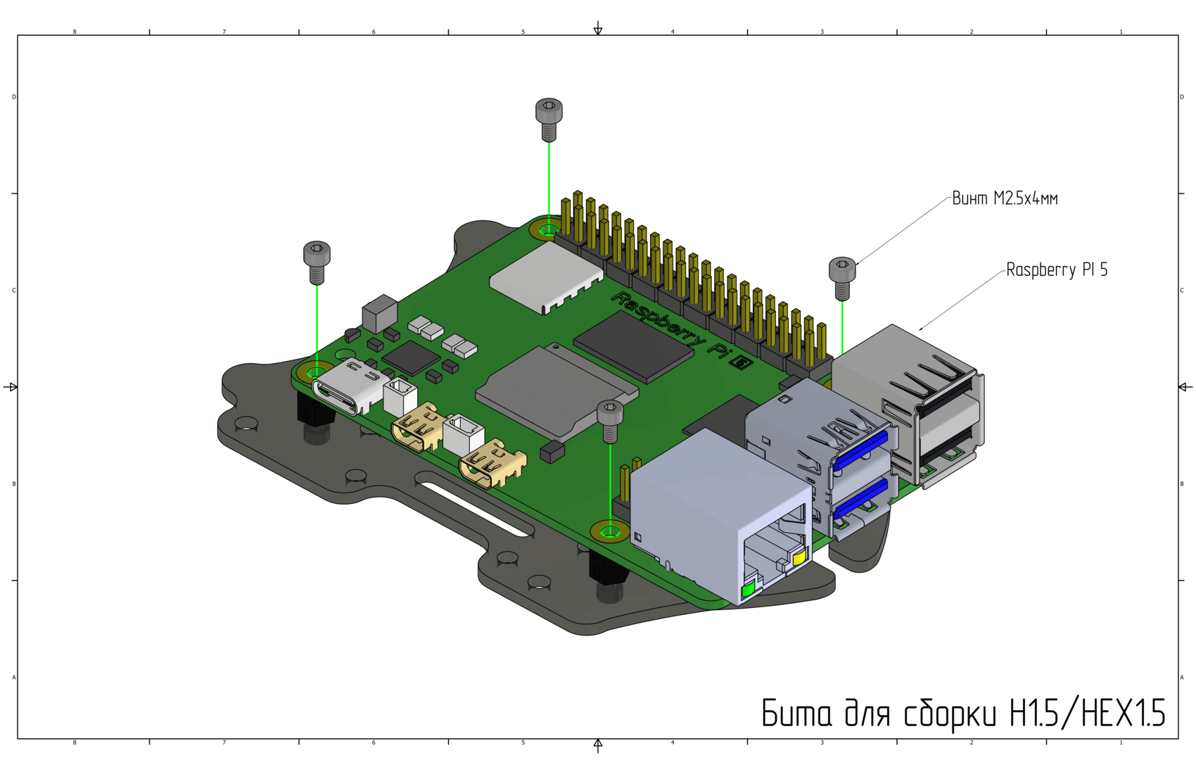 Зафиксируйте плату Raspberry Pi 5 с помощью винтов М2.5х4 (Ячейка 17).
