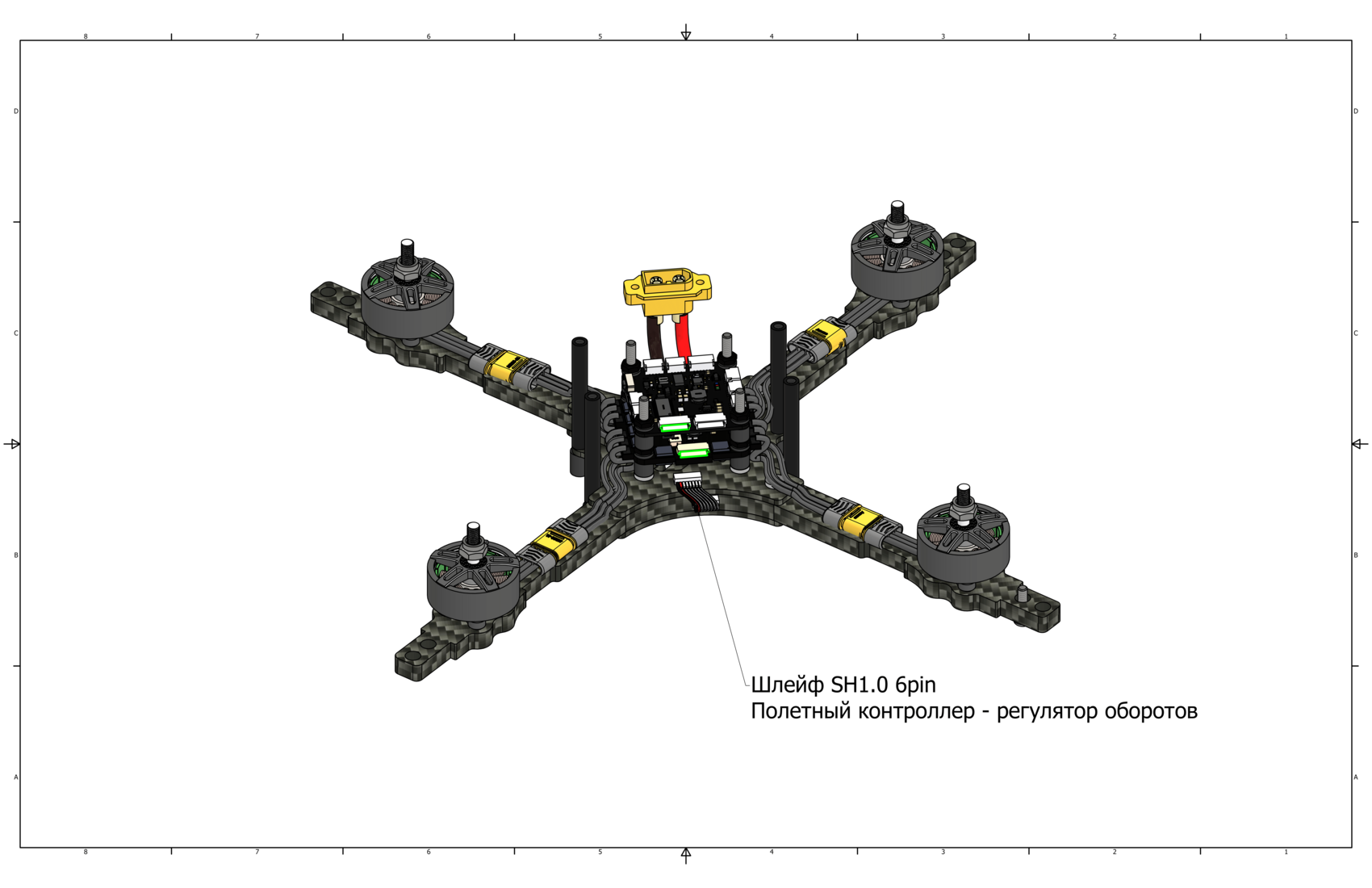Установите 6-пиновый шлейф между полетным контроллером и регулятором оборотов (ESC).