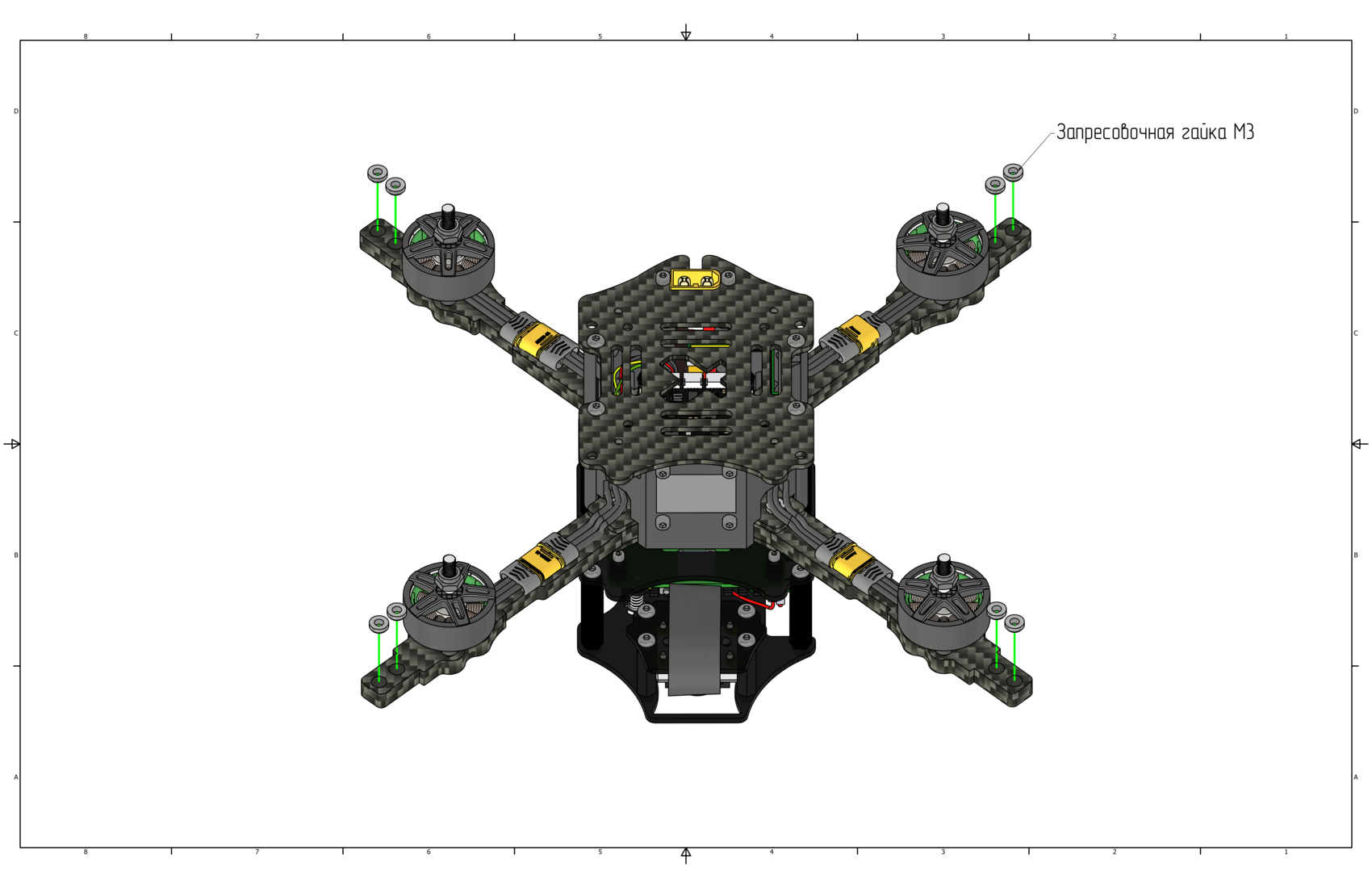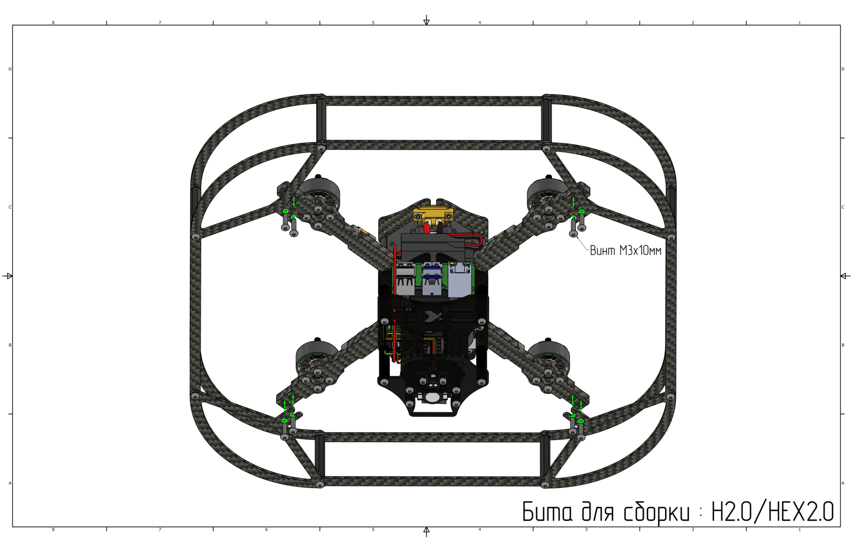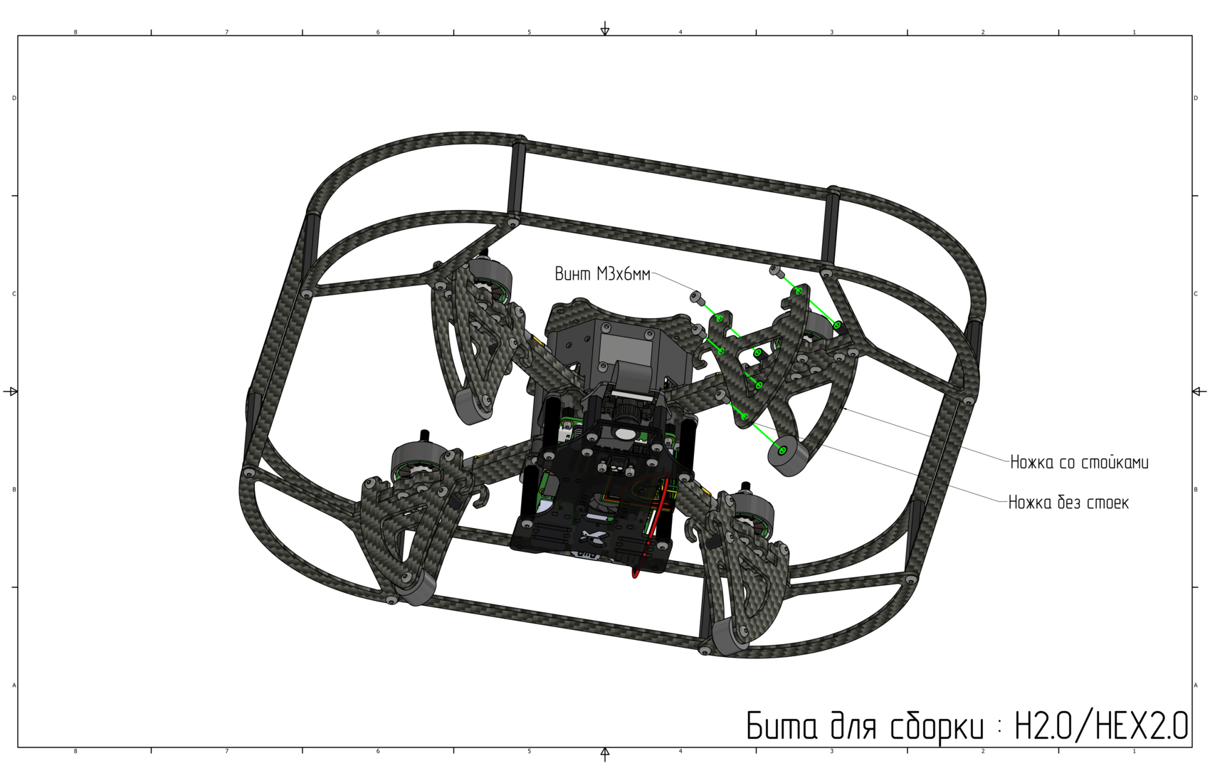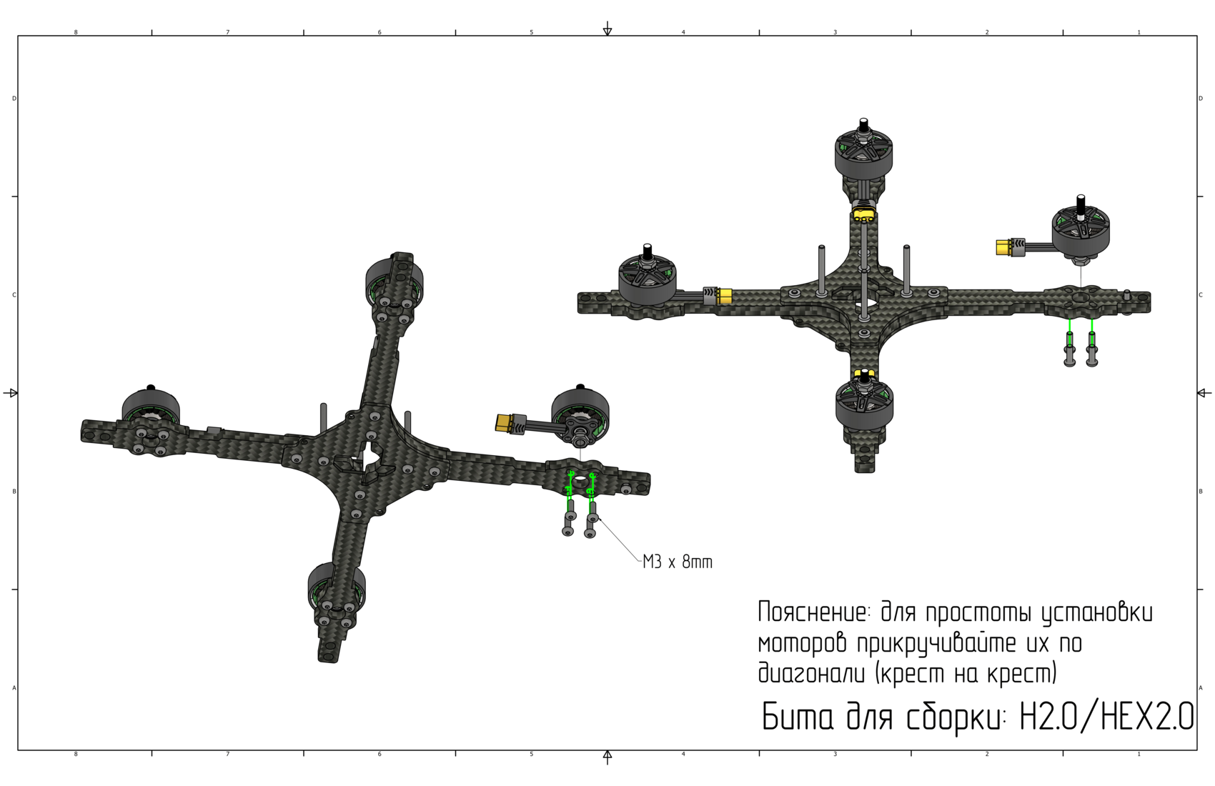 При сборке применяются крепёжные элементы разных типоразмеров. Установка винтов или стоек несоответствующего размера может привести к повреждению квадрокоптера.
