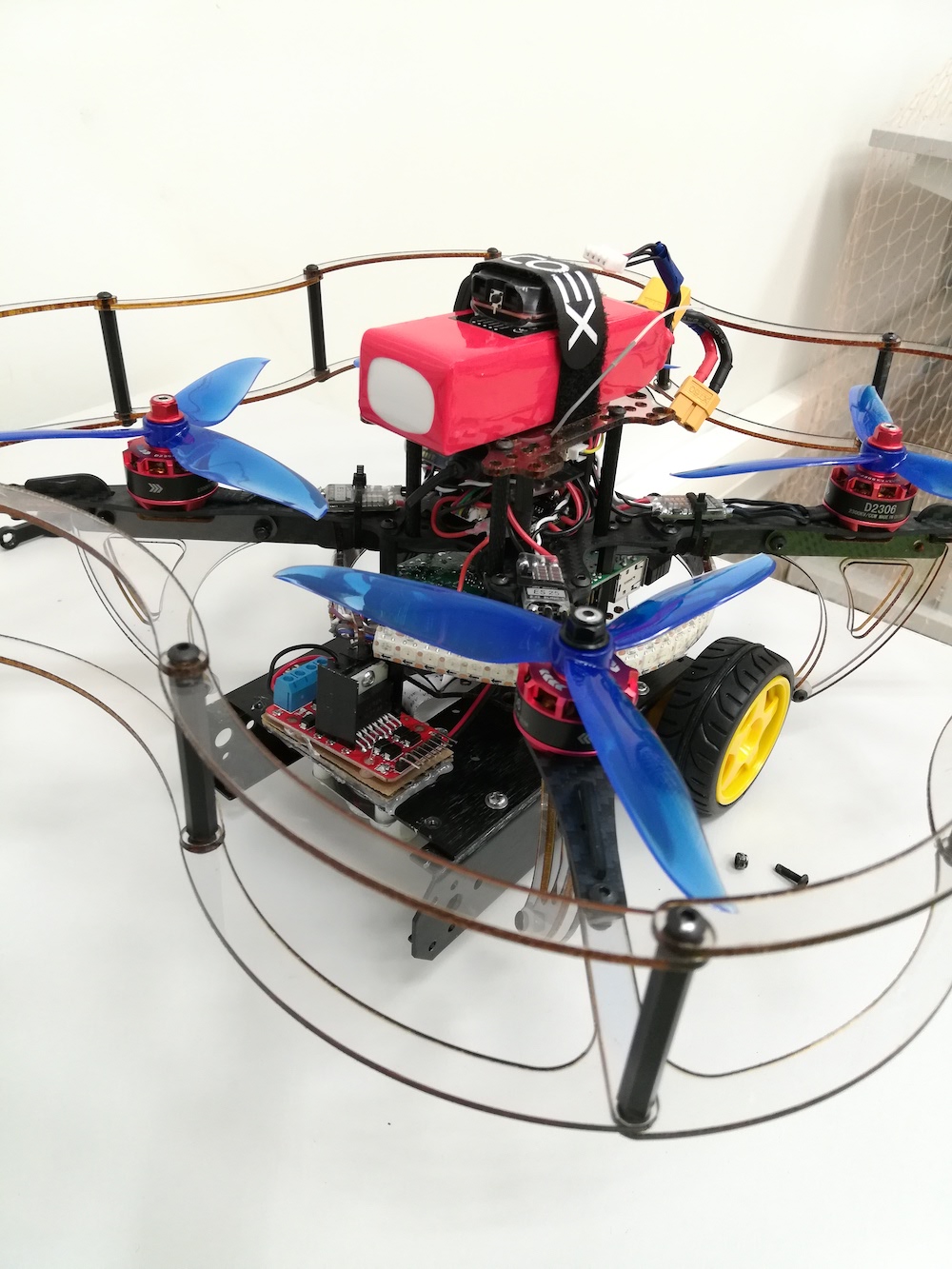 Испытания квадрокоптера, скрещенного с мобильной платформой, доказали работоспособность проекта с возможностью расширенного функционала программируемого квадрокоптера.